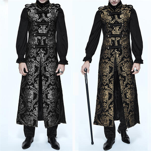 GOTHIC ブラックコーデ 中世貴族風 王子様 洋服 舞台 中世 貴族 衣装 豪華 メンズ チョッキ風 コート ロングコート 演劇 舞台衣装 ステージ ゴールド パンク風 大きいサイズ【S/M/L/XL/2XL/3XL】代引き不可